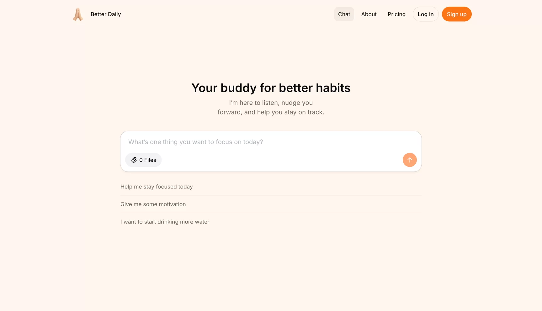 One inspiring example of what you can build with Outchat is Better Daily — a simple yet powerful AI companion that helps people build habits, stay motivated, and celebrate small wins.